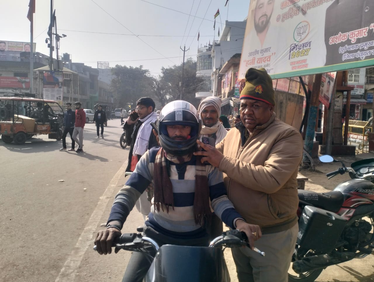 यातायात पुलिस का जागरूकता अभियान, चालान की जगह हेलमेट खरीदने की सलाह