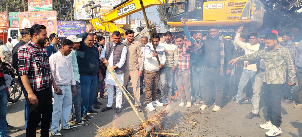 गजरौला में बजरंग दल कार्यकर्ताओं ने निकाली जिहाद की अर्थी, फूंका पुतला