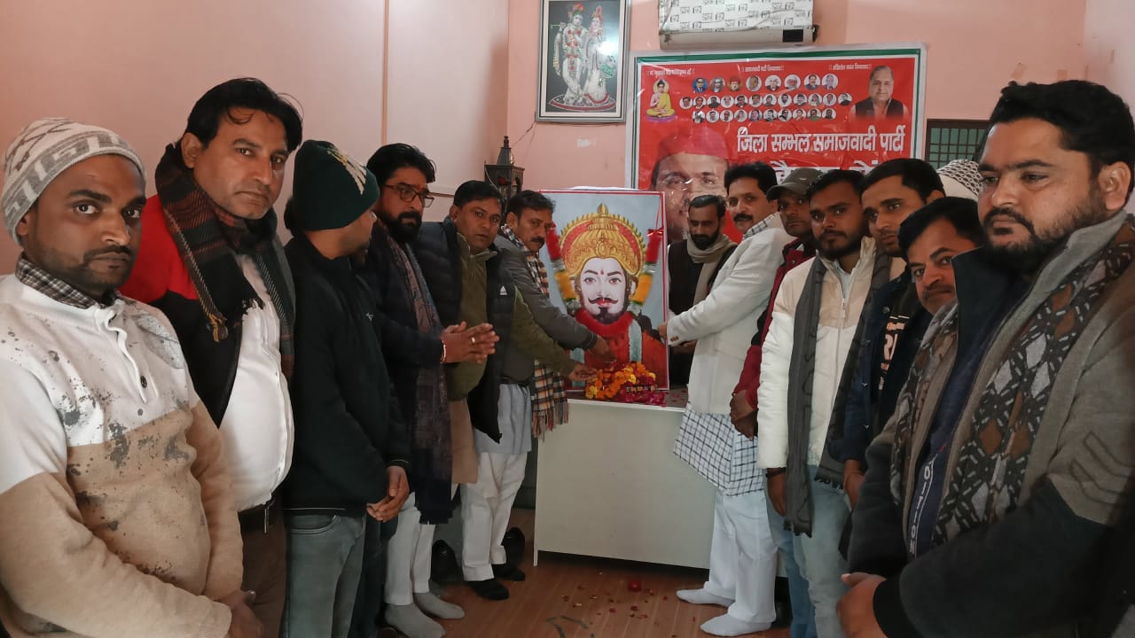 बहजोई /संभल(सब का सपना):- समाजवादी पार्टी जिला बैठक में कैंप कार्यालय बहजोई पर महाराजा बिजली पासी की जयंती मनाई गई बैठक में जिला अध्यक्ष एवं पदाधिकारी ने महाराजा बिजली पासी के चित्र पर माला अर्पण कर श्रद्धांजलि अर्पित की