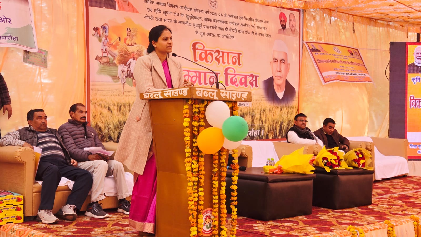 अमरोहा (सब का सपना):- भारत के भूतपूर्व प्रधानमंत्री स्व० चौधरी चरण सिंह जी के जन्म दिवस के शुभ अवसर पर जिलाधिकारी निधि गुप्ता वत्स की अध्यक्षता में कलेक्ट्रेट परिसर में किसान सम्मान दिवस आयोजित किया गया। जिलाधिकारी, मुख्य विकास अधिकारी, भूतपूर्व सदस्य माननीय पिछड़ा वर्ग आयोग उत्तर प्रदेश चंद्रपाल खड्गवंशी एवं अन्यों ने पूर्व प्रधानमंत्री एवं भारत रत्न स्वर्गीय चौधरी चरण सिंह जी के चित्र पर पुष्प अर्पित कर उन्हें नमन किया। जिलाधिकारी द्वारा इस अवसर पर कृषि, उद्यान, गन्ना, पशुपालन और अन्य विभागों द्वारा लगाए गए स्टाल का भी निरीक्षण किया गया और उत्पादों की बारीकी से जानकारी ली गई